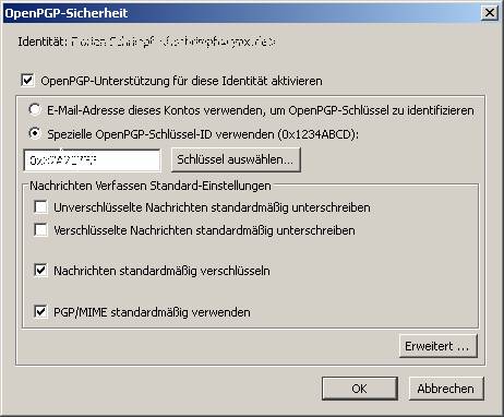 fest einstellen: OpenPGP > Einstellungen. Die verschiedenen